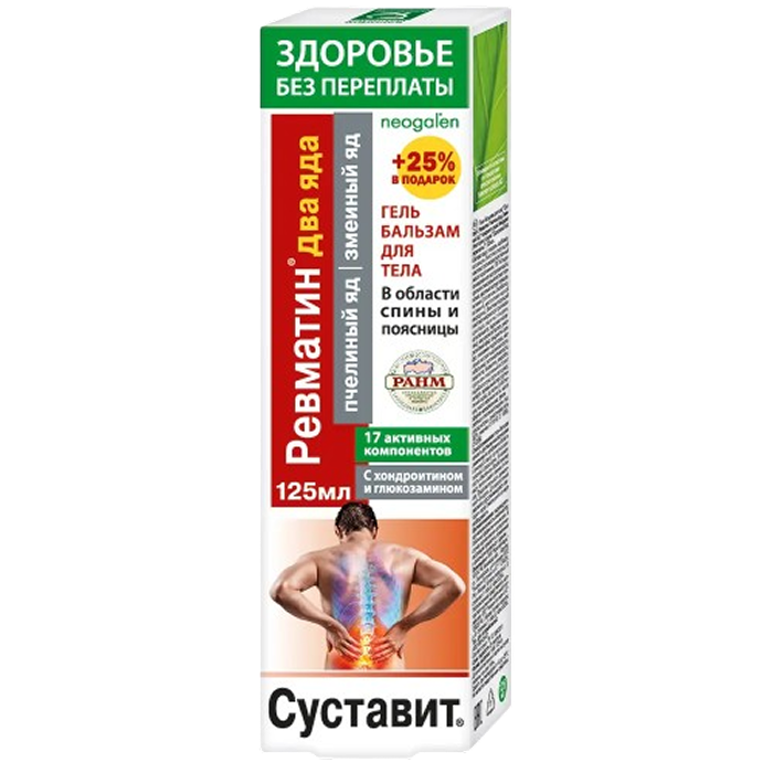 СУСТАВИТ Ревматин/пчелиный яд/змеиный яд гель-бальзам для тела 125 мл