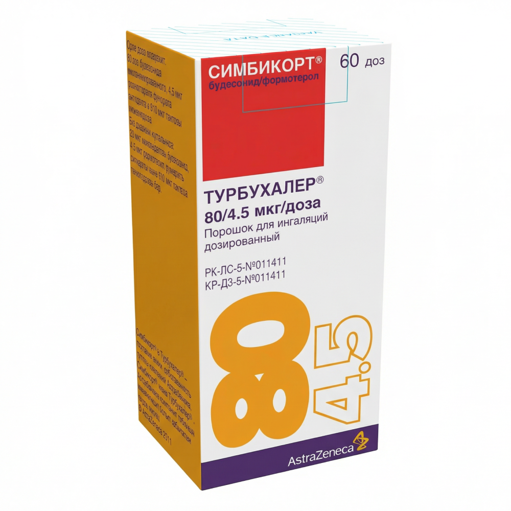 СИМБИКОРТ Турбухалер 80/4,5 мкг/доза 60 доз порошок для ингаляций дозированный