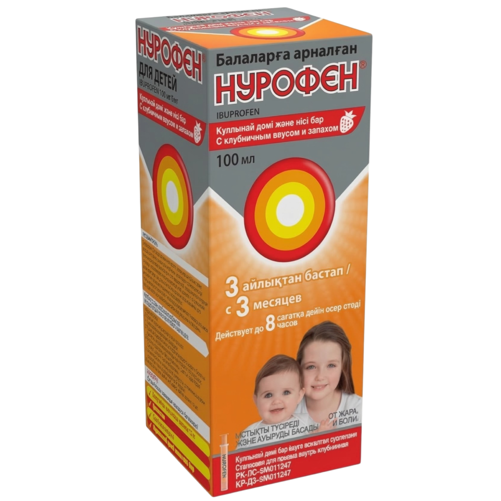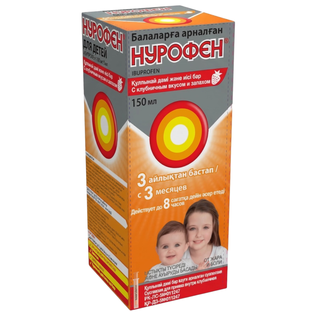 НУРОФЕН 100 мг/5 мл сусп. д/приема вн. 150 мл Клубника