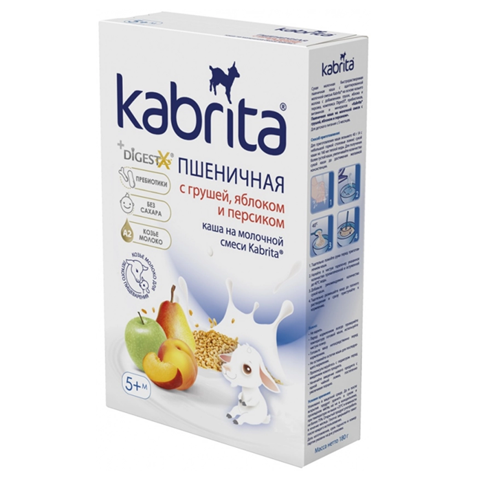 KABRITA Каша пшеничная на молочной смеси с грушей,яблоком и персиком 5+