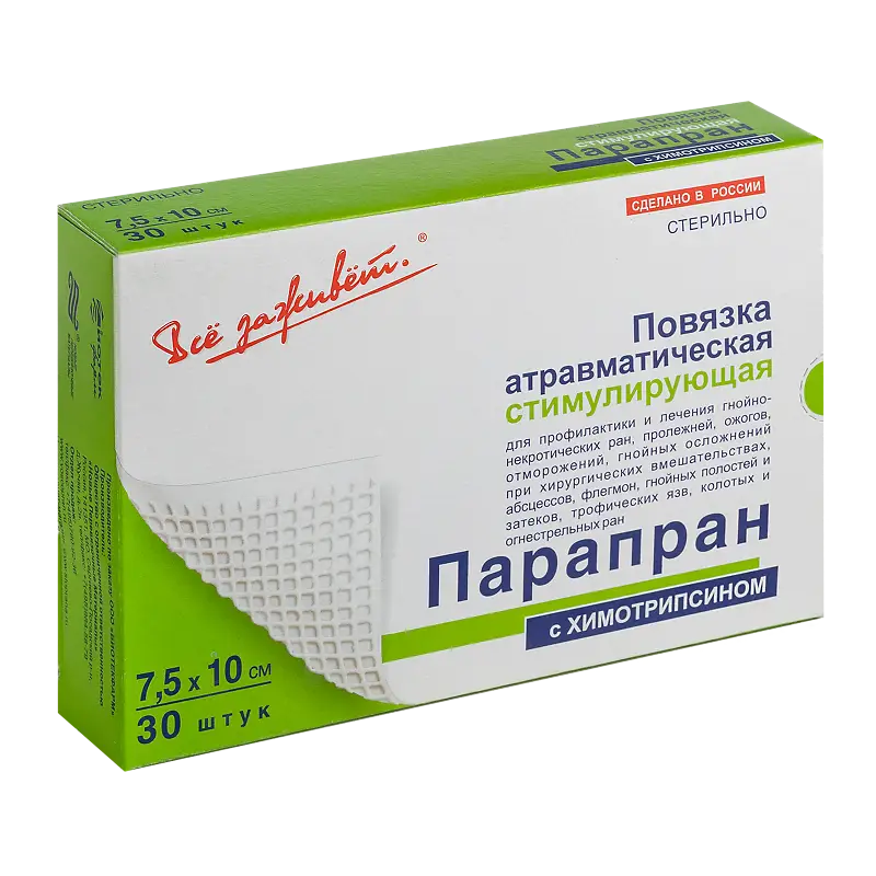 ПАРАПРАН Повязка с химотрипсином стимулирующая 7,5х10 см №30