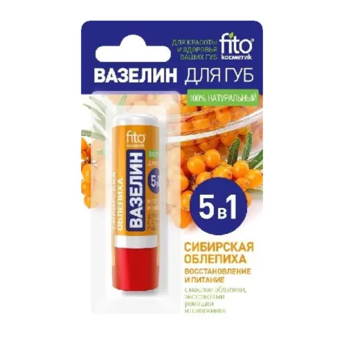 FITO КОСМЕТИК Вазелин для губ 5в1 сибирская облепиха