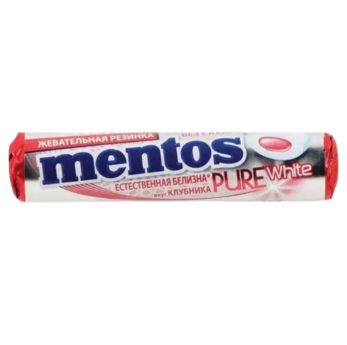 MENTOS Pure White Жевательная резинка Клубника 16 гр.