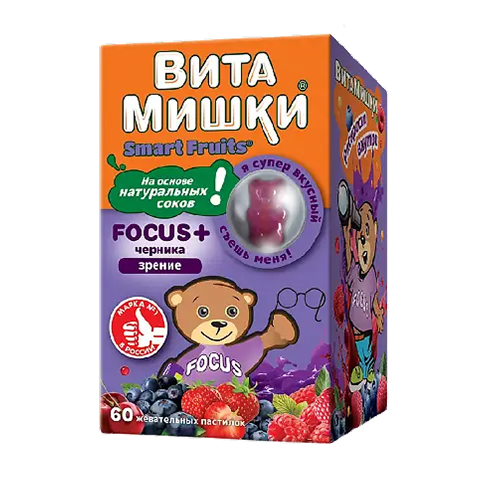 PM Kid`s formula Вита-Мишки Focus+черника, 60паст.