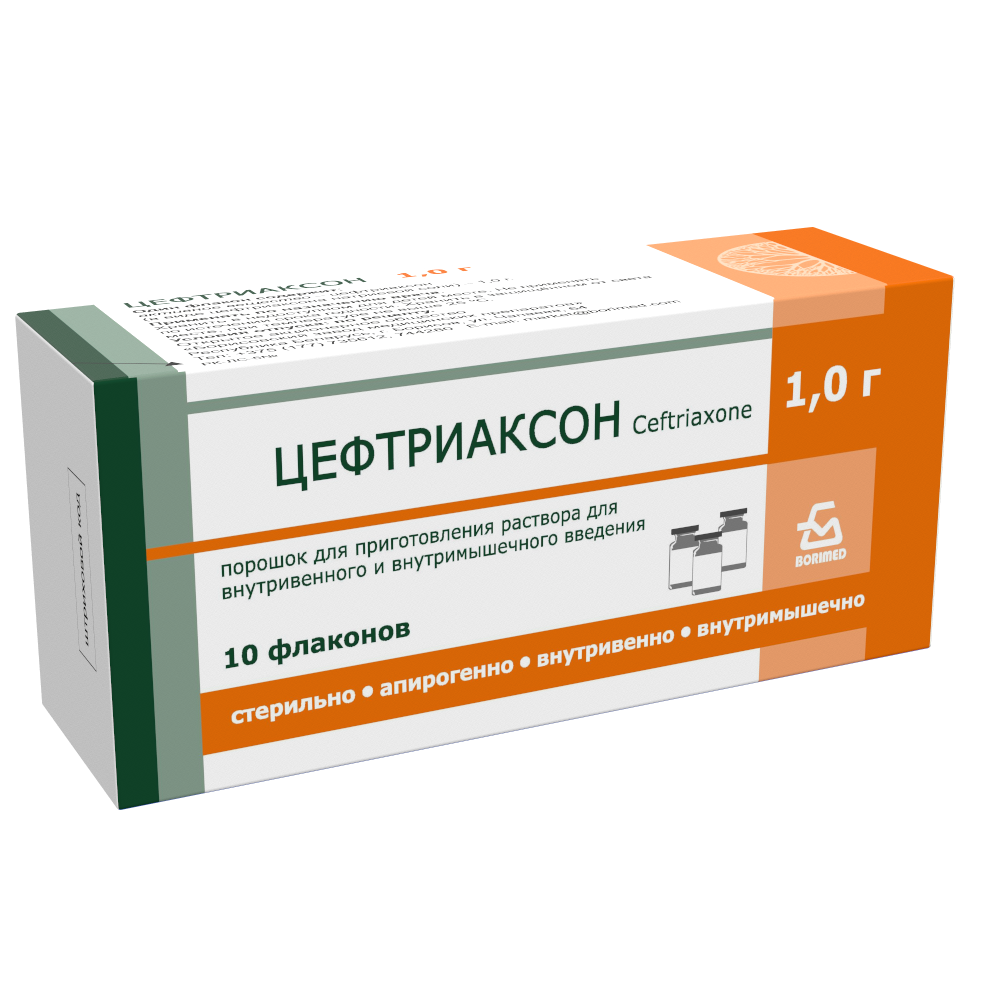 ЦЕФТРИАКСОН д/приг р-ра д/вв и вм введения 1 г №10 фл