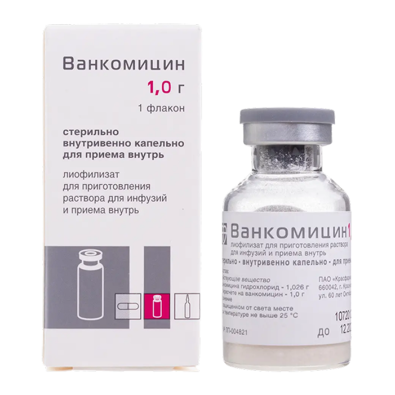 ВАНКОМИЦИН лиофилизат д/приг.р-ра д/инф. и приема внутрь 1 г №1 фл