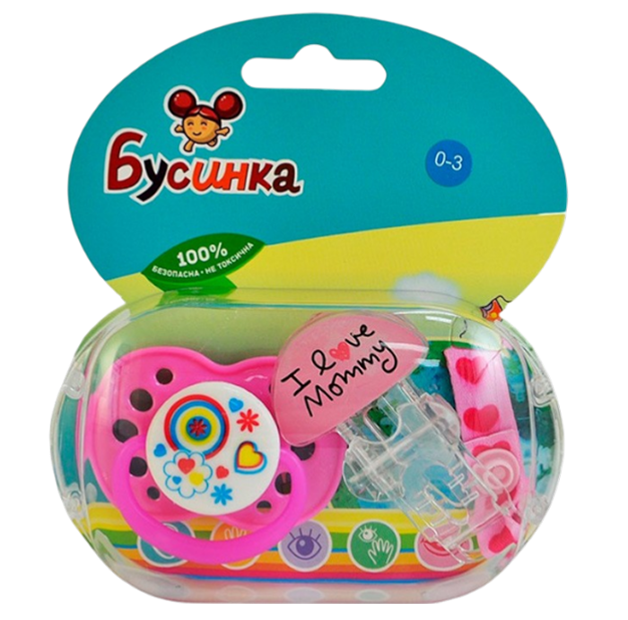 БУСИНКА Пустышка с прищепкой Соска силиконовая круглая 0-18 421