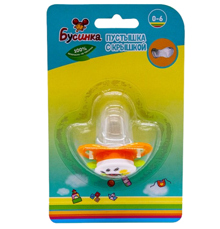 БУСИНКА Пустышка с крышкой Соска силиконовая с прикусом 0-6 м 399