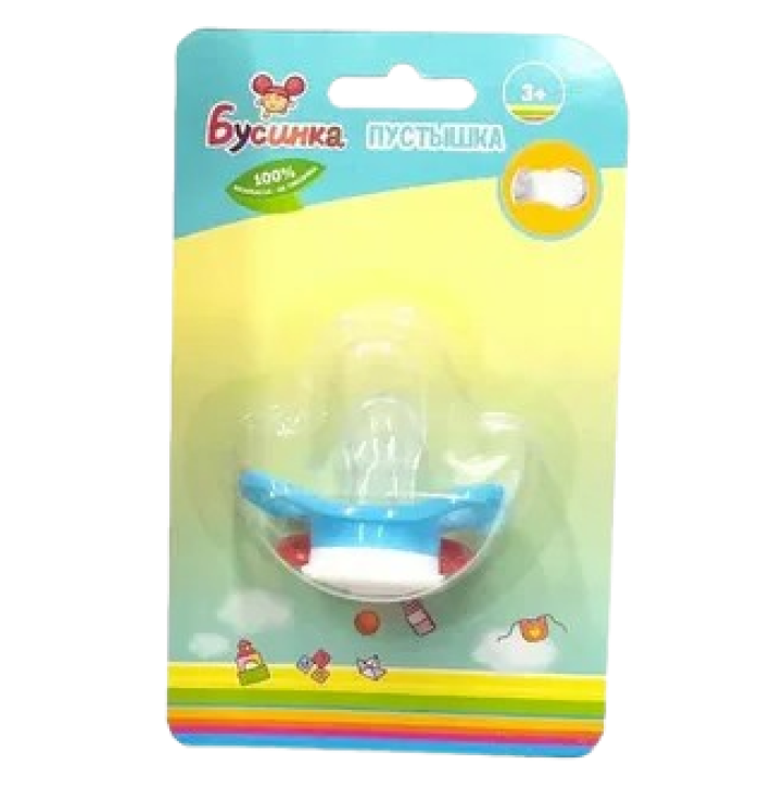 БУСИНКА Пустышка с крышкой, соска силиконовая круглая 0-6 месяцев (арт. 398)